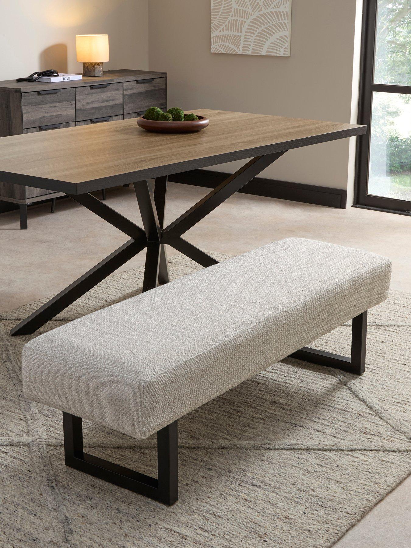 The Very Collection Rocco Bench CUSHION COVER USE FABRIC, METAL LEG TUBE USE 40x40mm SQUARE TUBE, MATT BLACK Assembly: Self Assembly Depth: 43 CM Height: 44.2 CM Material Content: FABRIC, LVL WOOD, METAL TUBE Width: 142 CM Chair Type: Formal Easy home assembly Easy to clean stylish (W) 142cm x (D) 43cm x (H) 44.2cm, SH: 44.2 Chair Height (in cm): 44.2 Chair Width (in cm): 142 Chair Depth (in cm): 43 Chair Seat Height (in cm): 44.2 Chair Assembly Type: Part Assembled Chair Weight (in Kg): 14.5 The Forest Stewardship Council (FSC) is a global, not-for-profit organisation. Look for the FSC logo on our FSC-certified products - by choosing these you are supporting responsible management of the world's forests. Learn more at www.fsc.org. FSC-N003961.