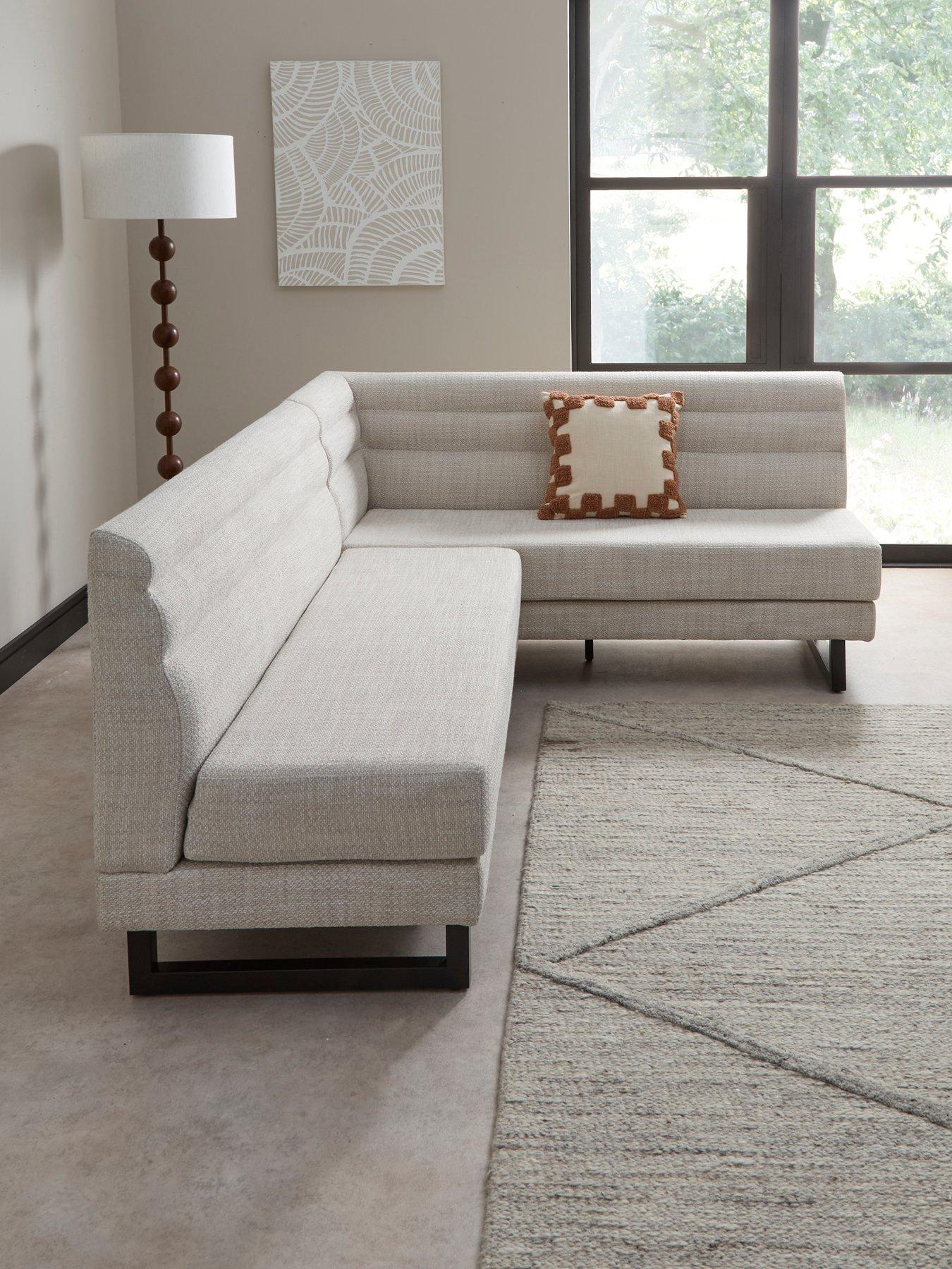 The Very Collection Rocco Corner Dining Bench Informal dining is easy with this stylish Rocco corner bench from The Very Collection. Ideal for sliding into a corner of your room, the textural fabric and soft cushioning make a comfy place for family and friends to sit during mealtimes, while the black metal legs add a contemporary accent. Please remember to measure your available space before ordering. Dimensions: Height 85 (seat height 44.2), Width165-230,Depth 65 cm Assembly: Self Assembly Depth: 65 CM Height: 85 CM Material Content: FABRIC, LVL WOOD, METAL TUBE Chair Type: Formal Easy home assembly Easy to clean stylish (W) 165-230cm x (D) 65cm x (H) 85cm, SH: 44.2 Chair Height (in cm): 84 Chair Depth (in cm): 65 Chair Seat Height (in cm): 44.2 Chair Assembly Type: Part Assembled Chair Weight (in Kg): 84.3