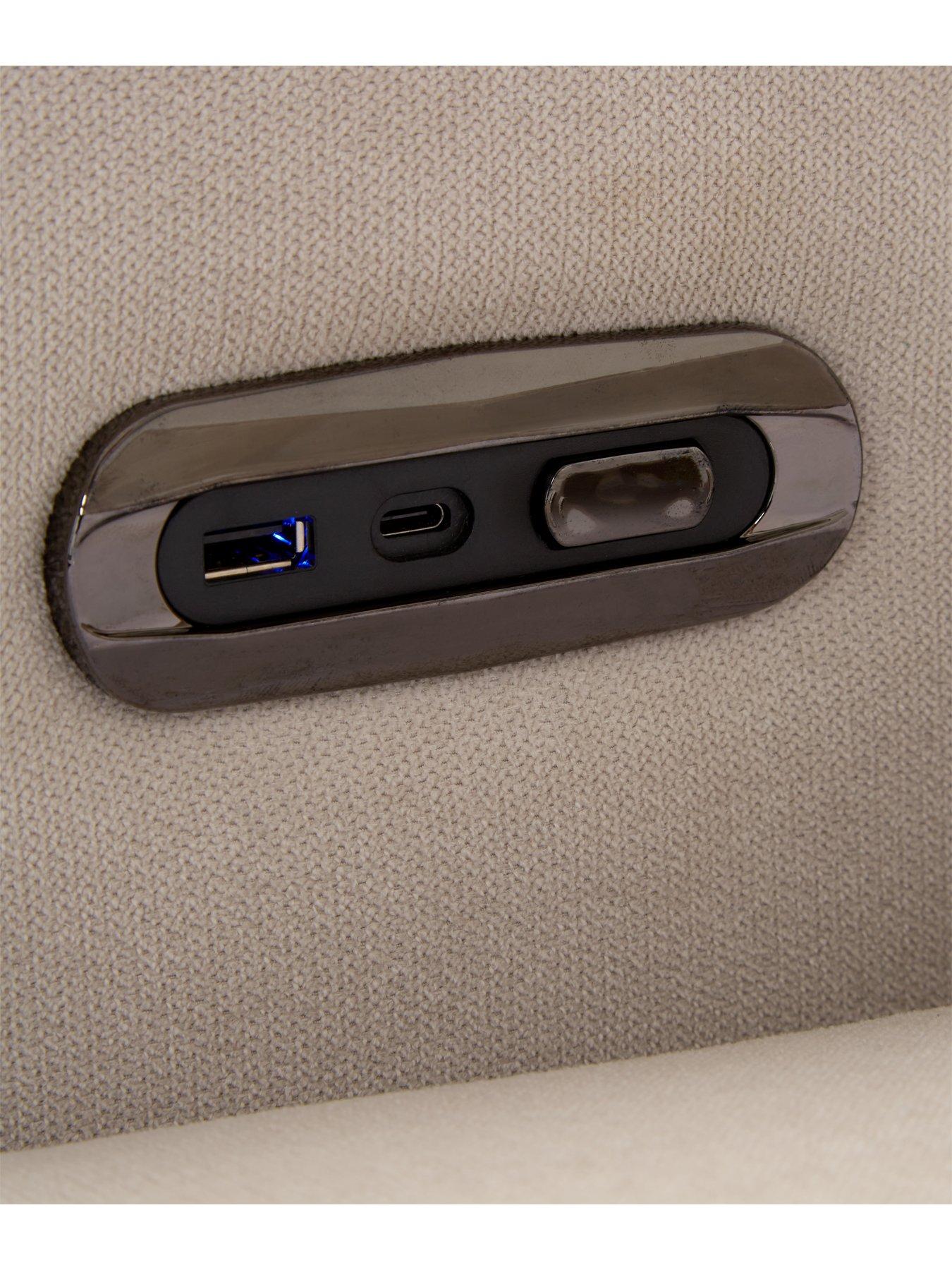 Very Home San Antonio Power Recliner RightHand Corner Group in Light Grey with Charging Ports H98x W365 xD 232cm Comfort you can't wait to come home to So spacious, this large San Antonio corner group is upholstered in a super textual woven fabric which comes in a light grey shade - perfect for matching will all kinds of accent cushions. Switch off... Ready to relax? The electric power reclining function means all you need to do is push a button on the side of the sofa and it will automatically raise your legs into the perfect position for catching 40 winks on a Sunday afternoon. Ratchet headrests can be easily adjusted to take the comfort up an extra level. ...And recharge Each side of the sofa is fitted with charging ports for both USB and Type C connections, so you can easily charge up your device while you top-up your own energylevels. Beauty in the details San Antonio is thoughtfully finished with a wide, straight-lined arm and bold blackchrome legs. Bouncy pocket sprung seats boast a foam core with a fibre wrap, while comfy back cushions are foam- and fibre-filled. All cushions are fixed to keep them neatly in place. Free Swatch Service Get a feel for this fabric before you buy with our FREE swatch service. Simply email SwatchOrder@ClickSpares.co.uk with your name and address, along with the sofa range name, item number, colour choice and the name of the retailer's website you're ordering from. Your swatches will be delivered within 5 working days (subject to availability). Please remember to measure your available space before ordering. Dimensions: Height 98, Width 365, Depth 232 cm Height with headrests folded down: 81 cm Assembly: Part Assembled Depth: 232 CM Height: 98 CM Material Content: Foam and pocket spring seat Seat Cushion Filling: Pocket Sprung Seat Cushion Which Combines A Foam Core With A Fibre Wrap Width: 365 CM Back Type: Fixed Back Cushion Filling: Foam & Fibre Filled Back Cushion Number of Seats: 5 Seat Construction: Fixed Seat Cushion Seat Height (in cm): 46 adjustable headrest black chrome leg Seat firmness: Firm (based on internal sit test)