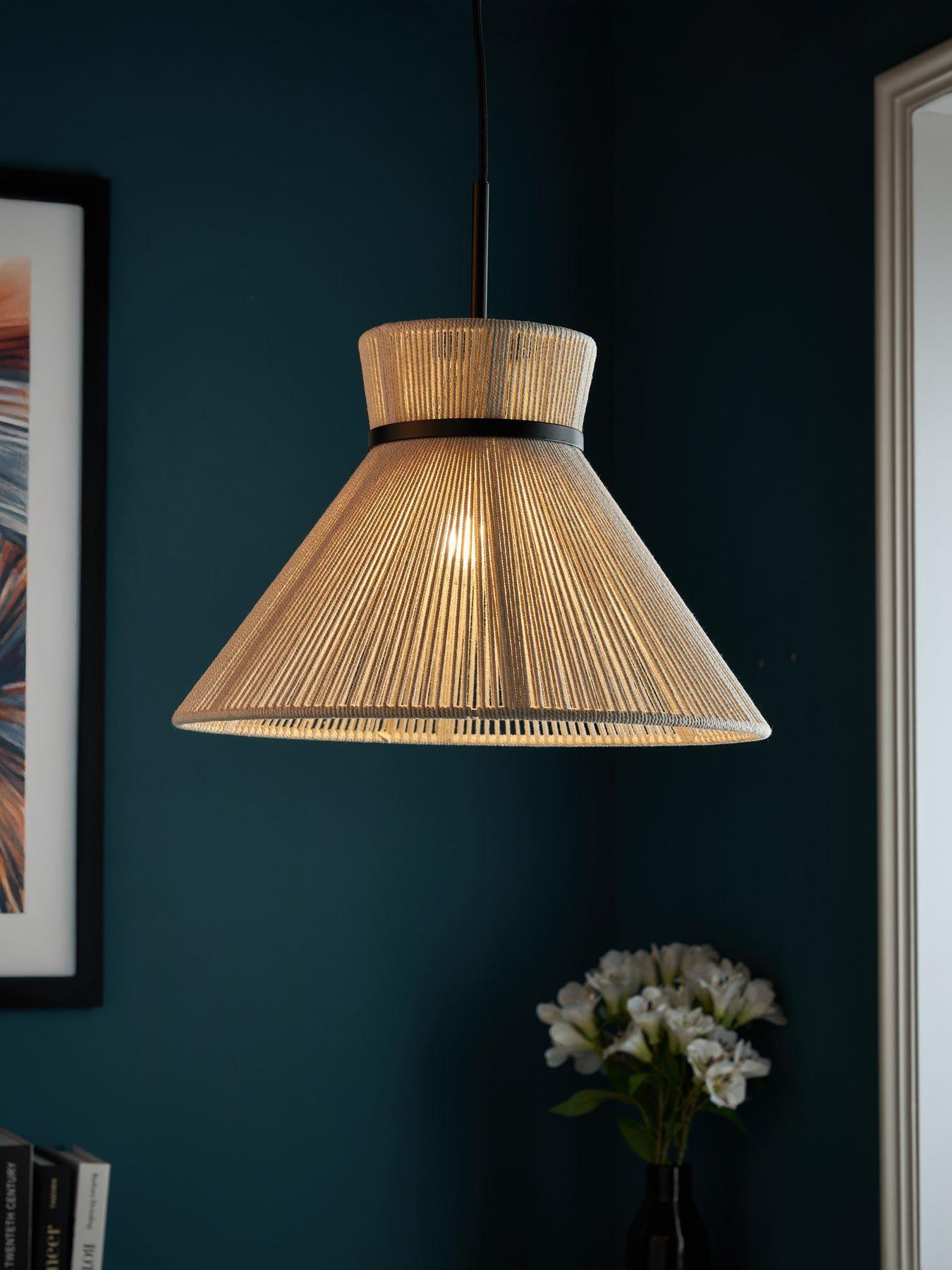 The Very Collection String Pendant With Metal Detail String Pendant with Metal Detail Depth: 40 CM Height: 126 CM Material Content: Fabric & Metal Width: 40 CM Diameter (in cm): 40 Indoor / Outdoor: Indoor Maximum Wattage (in Kw): 10 1 x E27 GLS Max 10 w Bulb not included 1 x E27 GLS Max 10 w Bulb not included