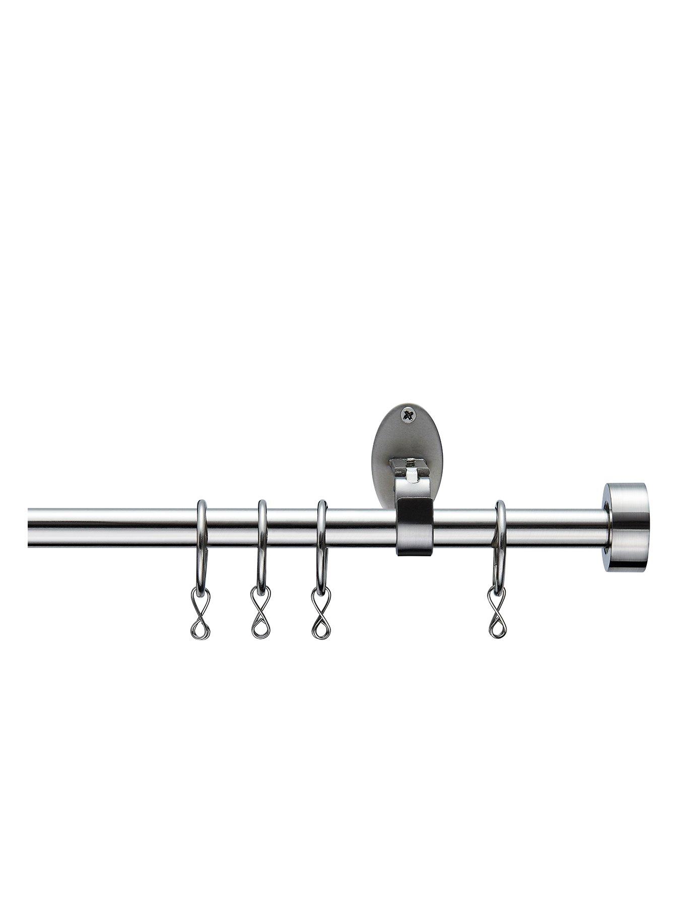 Very Home Stud End Finial Stainless Steel Extendable Curtain Pole in 3 size options Complement your curtains and add the wow factor to your windows with the sophisticated styling of our Everyday Stud End Finial Extending Curtain Pole. With 3 adjustable sizes to choose from - 70-120 cm, 120-210 cm and 110-300 cm - the pole is ideal for light and medium weight curtains, but it can also hold up heavier fabrics, too. Its stainless steel finish gives a versatile visual that works in classic and contemporary room settings alike, while stud end finials elevate the look and help to enhance almost any drape design. Easy to install, this rust-and-corrosion-resistant pole can be extended to fit your window recess without any need for additional cutting. It comes complete with two brackets for fixing it to the wall, as well as optional curtain rings for pencil pleat headers. Along with the pole and finials, an assembly kit with full instructions is also included. Material Content: Solid Wood+steel+plastic