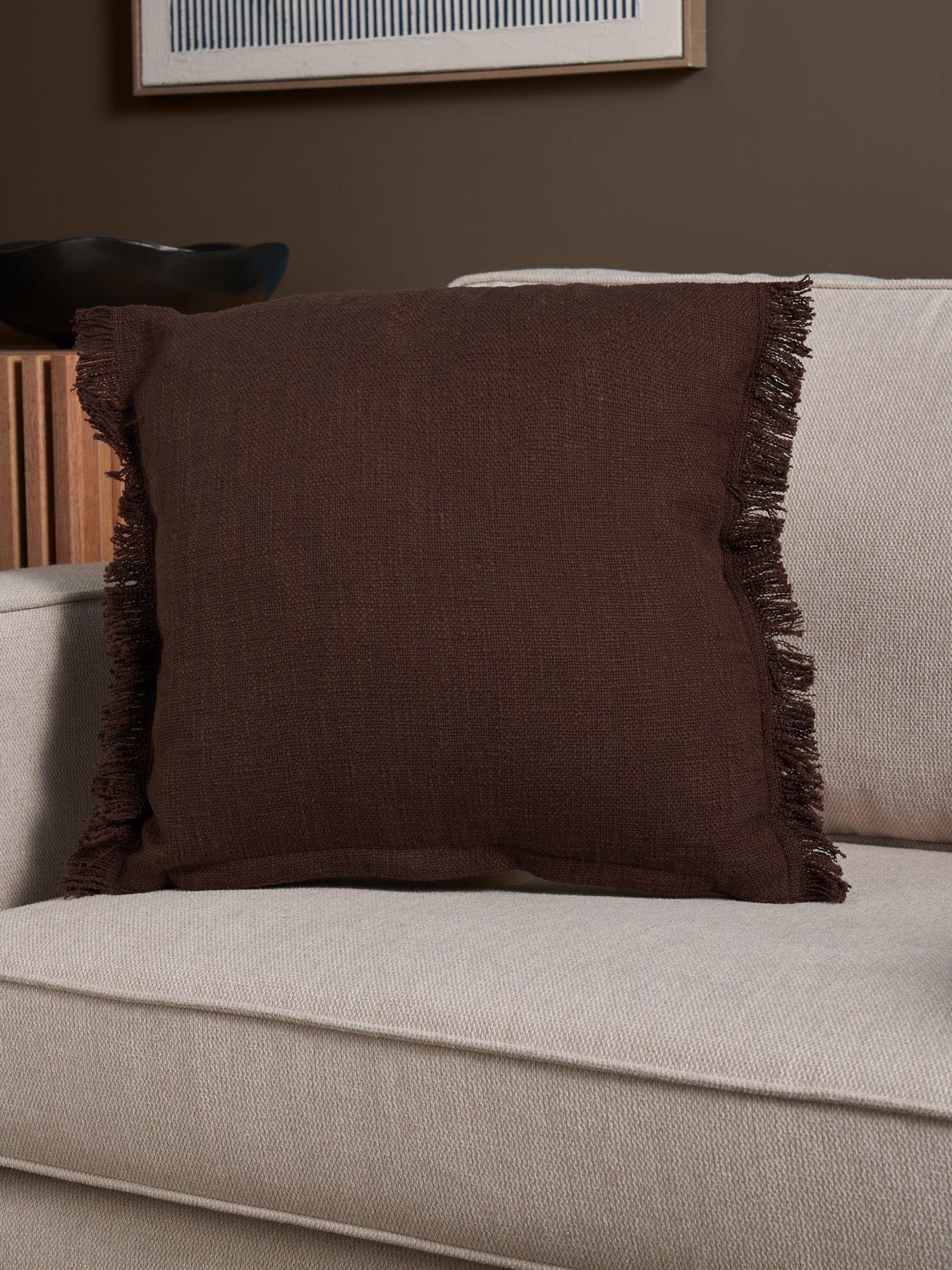 The Very Collection Zen Textured Cushion With Fringe - Brown -