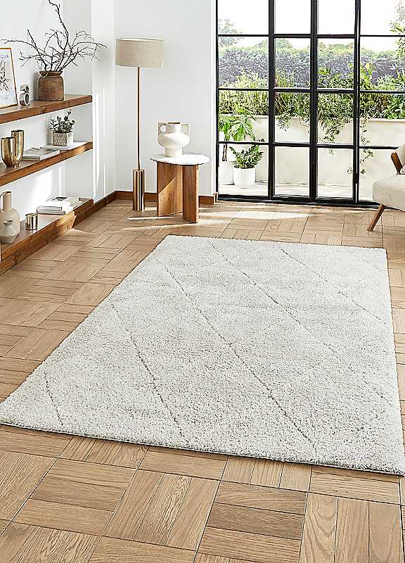 Think Rugs Ideal Shaggy Berber Diamond Rug - Silver - Size 120 x 170cm