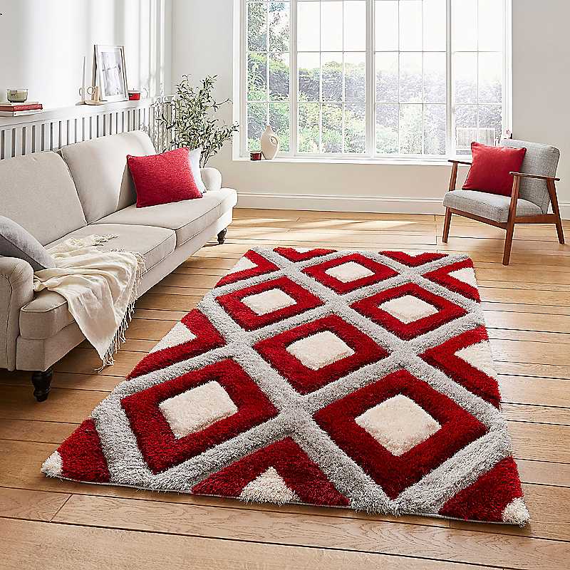 Introducing our Olympia 3D geometric diamond shaggy rug, a stylish and comfortable addition to any shaggy living room. Featuring a unique 3D diamond design, this rug adds depth and texture to your space, making it a true standout piece. The thick shaggy pile provides a plush and cosy feel underfoot, perfect for lounging and relaxing.Crafted from high-quality polypropylene, this rug is both durable and easy to maintain. It resists stains, fading, and shedding, ensuring that it will continue to look great for years to come.Whether you're looking to add a touch of sophistication to your living room or want to create a cosy atmosphere, our Olympia 3D geometric diamond shaggy rug is the perfect choice. Brand: Think Rugs Shaggy pile Wipe clean only Do not dry clean Do not machine wash, unless otherwise stated on the rug itself Vacuum with extreme care using a delicate attachment Avoid direct sunlight 100% Polyester For Rug size guide instructions click here If your rug has a loose thread, simply cut it with scissors (like an item of clothing). Brush the rug with a hand brush to help maintain the natural look of the rug. Shaking the rug up-side-down from time to time will help to remove any lodged dirt. For stains use a quality carpet shampoo, remove any stains immediately with a mild detergent. Avoid getting too much moisture as this may damage the rug. We recommend that Rugs should be used in conjunction with the 'Rug Grip Hold' when placed on smooth surfaces.