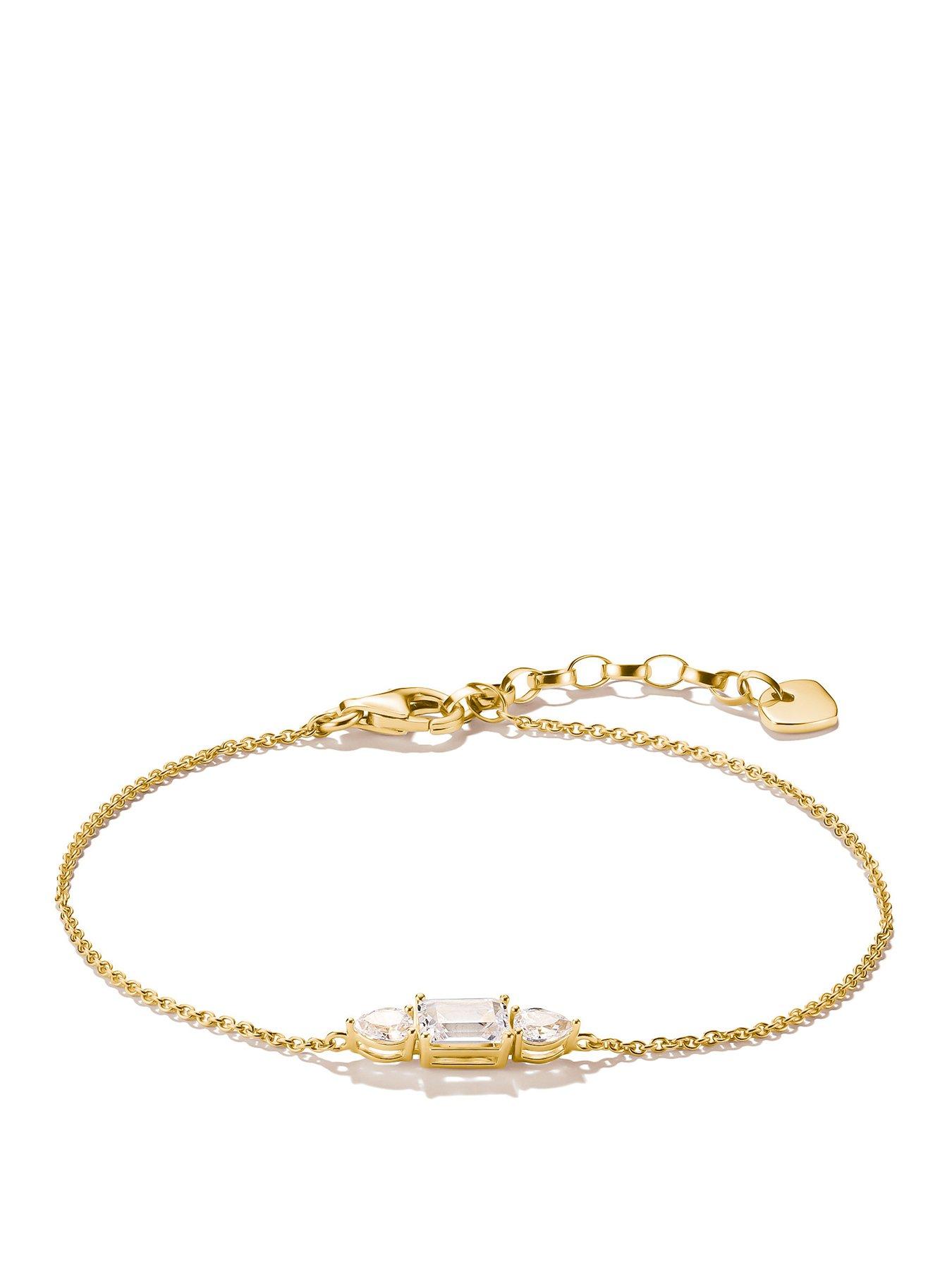 Thomas Sabo Bold Elegance Bracelet With Sparkling Zirconia, Gold-Plated Bold Elegance Bracelet With Sparkling Zirconia, Gold-Plated Fine Lines, Subtle Glamour: This Delicate Bracelet Made Of 925 Sterling Silver With Elegant 18K Gold Plating Reflects The Modern, Sculptural Design Language Of The Bold Elegance Line. In The Centre Are Sparkling White Zirconia Stones In Octagon And Drop Cuts, Which Elegantly Reflect The Light With Every Movement. The Filigree Bracelet Fits Easily Around The Wrist And Can Be Flexibly Adjusted From 16 To 19 Cm Thanks To An Extension Chain. Height: 4 Mm Width: 15.5 Mm Fashion Jewellery Type: Bracelets Metal Type: Silver