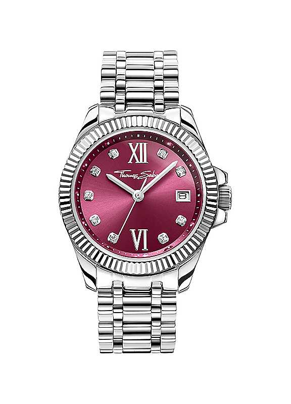 Divine Burgundy women's watch with cubic zirconia stones. The Divine is a glamorous eye-catching watch with a classic and irresistibly feminine design. Brand: Thomas Sabo Stainless Steel case Stainless Steel bracelet
