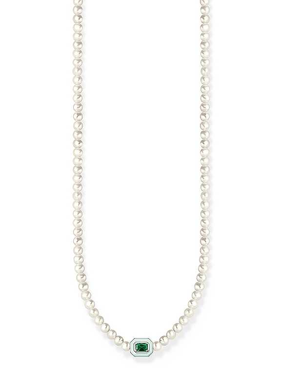 THOMAS SABO Green Stone and Pearl Necklace - Silver
