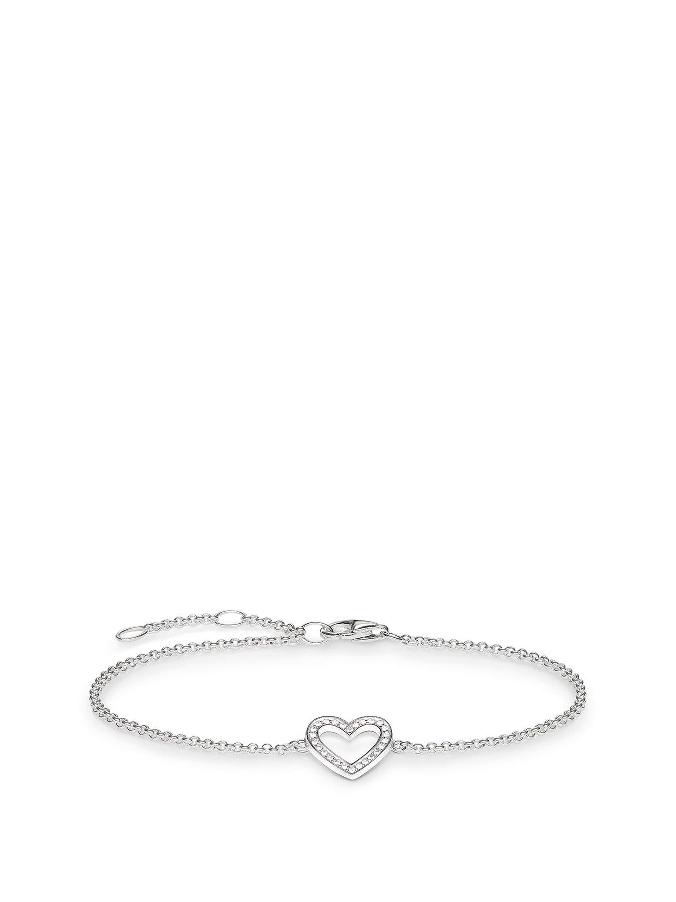 Thomas Sabo Heart Bracelet THOMAS SABO bracelet from the Sterling Silver Collection. - Symbol of love - Filigree cut-out - Precious moments of happiness An exquisite item of jewellery: this feminine bracelet crafted from Sterling silver with its pave zirconia-embellished cut-out heart delicately envelops the wrist. Category:bracelet Material:925 sterling silver Stones:zirconia pave white Clasp:lobster clasp Measurements:Size approx. 1,1 cm (0,43 Inch), Width approx. 0,2 cm (0,08 Inch) Itemnumber:A1553-051-14 Depth: .2 CM Height: 1.1 CM Width: 1 CM Fashion Jewellery Type: Bracelets Metal Type: Silver Stone Type: Dress Jewellery