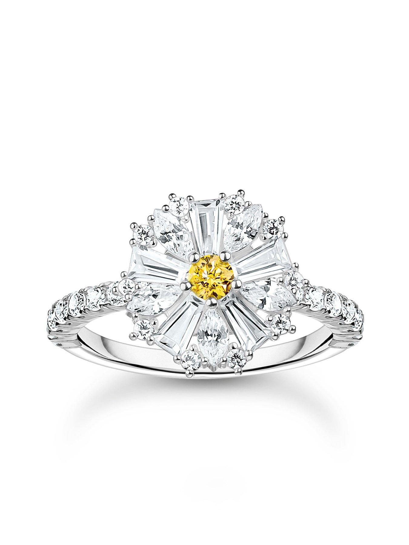 Thomas Sabo Lovely Daisy Cocktail Ring Lovely Daisy Cocktail Ring - A Large Flower Is The Centrepiece Of This Romantic Cocktail Ring, Which Is Set With White And Yellow Zirconia Stones - Half Of The Ring Shank Is Also Set With White Zirconia Stones - Playful Design That Celebrates The Beauty Of Nature And Invites You To Dream - Inspired By Delicate Daisies, Which Symbolise Loyalty And Trust - Carefully Crafted From 925 Silver - Rounded Ring Shank For Comfortable Wear Depth: 1.5 Mm Height: 11 Mm Width: 11 Mm Fashion Jewellery Type: Rings Metal Type: Silver Ring Type: Fashion Stone: Cubic Zirconia Stone Type: Semi-Precious Zirconia Gold