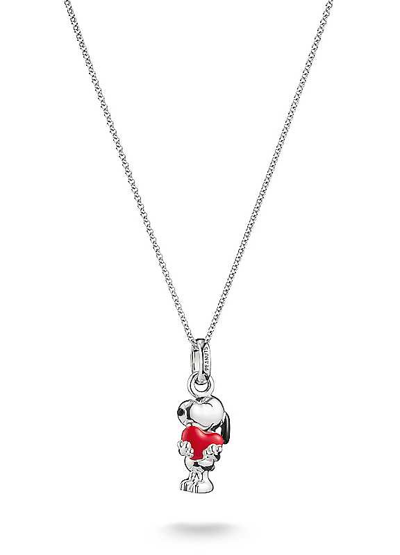 Thomas Sabo x Peanuts Snoopy Necklace with Heart.A symbol of love and friendship: this necklace features Snoopy embracing a bright red heart with devotion. The pendant is made from recycled 925 silver and decorated with enamel. The delicate silver chain ensures that this emotional motif enriches any look with warmth and affection - a perfect gift for anyone who wants to wear love in a charming way.925 Silver | heart pendant necklace, enamel pendant, silver heart necklace, sterling silver necklace, red heart necklace, heart shaped necklace