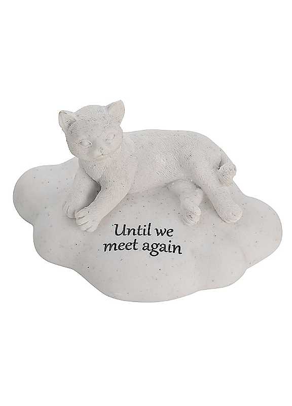 A cat memorial cloud from Thoughts of You by CELEBRATIONS®.This sentimental ornament provides a loving way to remember greatly missed, never forgotten pets.The white speckled, polyresin cloud-shaped creation is an intensely heartfelt piece. It is complemented by the heart-warming words, 'Until we meet again'. In black, these sentimental words instantly catch the eye and complete a loving tribute.PolyresinDimensions approx. 12.4D x 10.3W x 7.8H cm