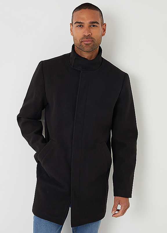 Threadbare Black Longline Faux Wool Funnel Neck Coat - Size M