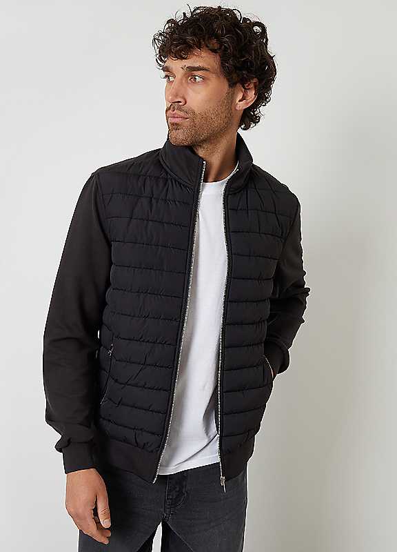 Stay stylish and prepared for any weather with this padded hybrid jacket from Threadbare. The fleece body and padded front create a lightweight yet warm layer that's ideal for cooler days. Featuring a funnel neck and storm guard zip, ribbed cuffs and hem. With two zipped outer pockets and an inner pocket for essentials, it's as practical as it is versatile. A regular fit that's easy to layer for smart-casual looks or weekend plans.Machine WashableMain: 78% Cotton, 16% Polyester, 6% ElastaneQuilted Front & Lining: 100% Polyester