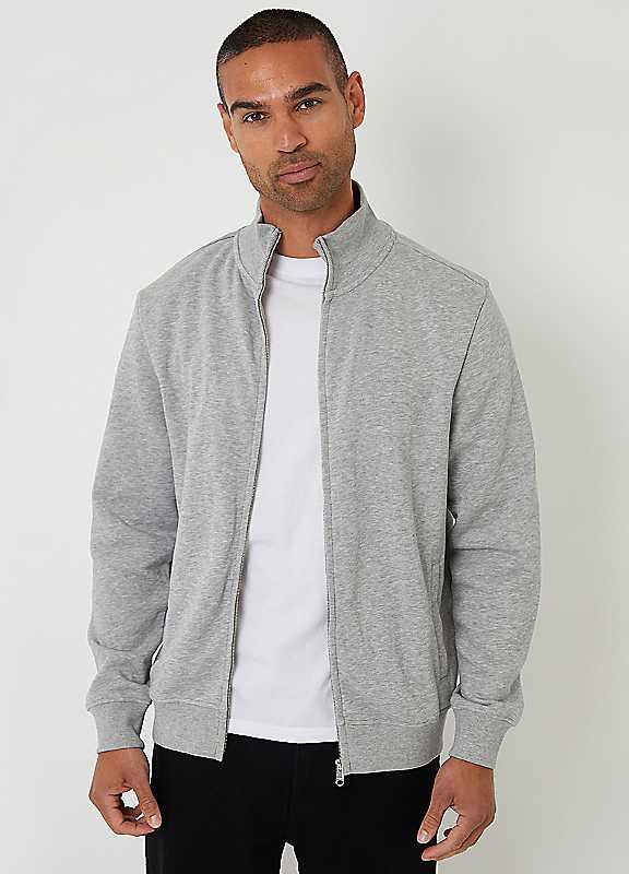 Threadbare Light Grey Funnel Neck Zip Through Sweatshirt - Lt Grey - Size L
