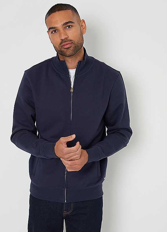 Threadbare Navy Funnel Neck Zip Through Sweatshirt - Size M