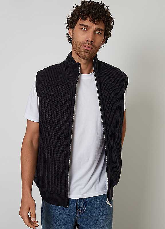 Threadbare Navy Knitted Quilted Gilet With Ribbed Funnel Neck - Size M
