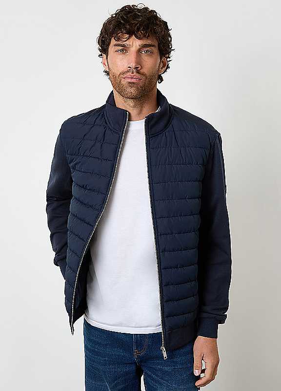 Stay stylish and prepared for any weather with this padded hybrid jacket from threadbare. The fleece body and padded front create a lightweight yet warm layer that's ideal for cooler days. Featuring a funnel neck and storm guard zip, ribbed cuffs and hem. With two zipped outer pockets and an inner pocket for essentials, it's as practical as it is versatile. A regular fit that's easy to layer for smart-casual looks or weekend plans.Machine washableMain: 78% Cotton, 16% Polyester, 6% ElastaneQuilted Front & Lining: 100% Polyester