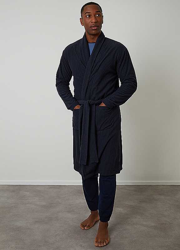 Threadbare Navy Waffle Fleece Dressing Gown - Size S/M