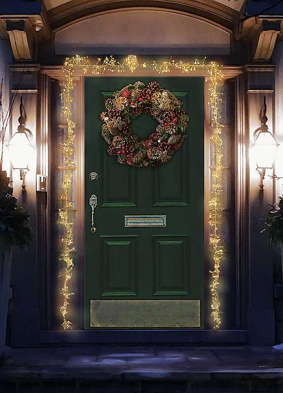 Elevate your holiday decor with these Clustered LED Warm White Door Lights, designed to infuse a festive touch into your Christmas celebrations. These LED lights boast energy-efficient operation, ensuring ultra-low running costs. With a lengthy 5.5-metre LED string and 8 metre lead wire, you'll have the freedom to adorn even the grandest doors or archways.Brand: Three KingsMains poweredSuitable for indoor & outdoor useIncludes IP20 transformer880L firecracker lamp with 8 functionsLow voltage product for ultra-low running costsPlastic & Electric componentsLength approx. 5.5 mThe images of the products on our website are for illustrative purposes. We endeavour to display as accurately as possible the colours of our products on our website, however, as different computers and mobile devices display colour tones differently we cannot guarantee the complete accuracy of the pictures or photographs that are shown.