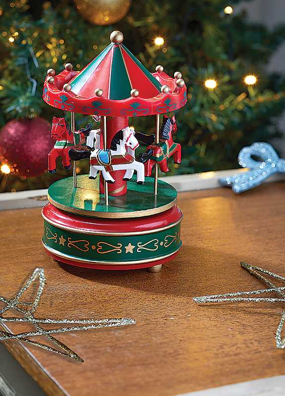 Bring some festive fun to your home with this charming carousel decoration. This musical carousel decoration will sit wherever you choose this festive season, generating a talking point wherever he is placed!Brand: Three KingsIndoor use onlyProduct care: Wipe clean only, avoid household cleaners/abrasivesMDFDimensions approx. 18H x 11W x 11D cmThe images of the products on our website are for illustrative purposes. We endeavour to display as accurately as possible the colours of our products on our website, however, as different computers and mobile devices display colour tones differently we cannot guarantee the complete accuracy of the pictures or photographs that are shown.