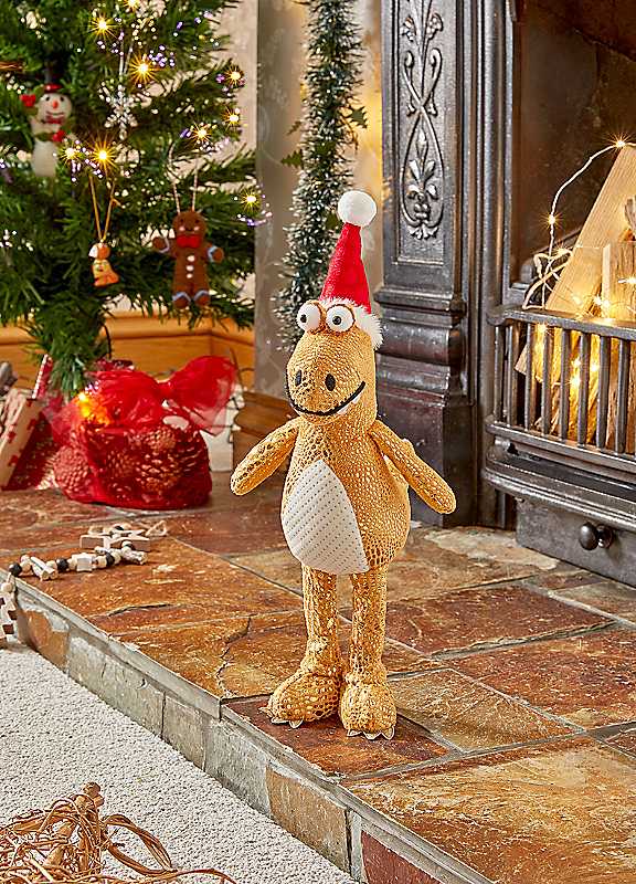 Golden Festive Dino! Have a Rawr-some Christmas!This gold dinosaur is ready to bring some prehistoric fun to your holiday celebrations!Perfect for gifting or adding a bold, festive touch to your home d©cor.For indoor use onlyHeight approx. 35 cm | toy figurines, figurine ornaments, dinosaur figurines, cute figurines, dinosaur christmas ornaments, gold christmas decor, gold christmas ornaments, christmas figurines