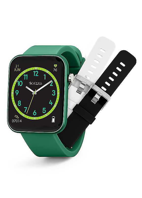 Tikkers Smart Series 13 Smart Watch and Green Silicone Strap Set