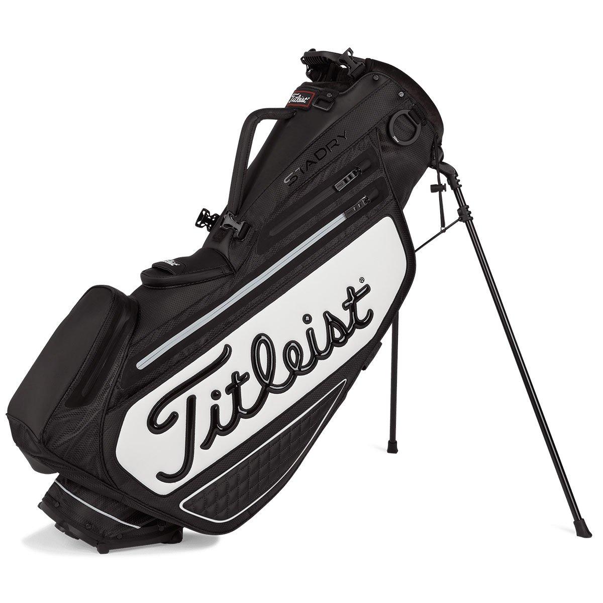 Titleist Premium StaDry Golf Stand Bag Features : StaDry™ Waterproof Construction4-Way Divider System7 Pockets in TotalPremium Double StrapInspired by the Tour range, the Titleist Premium StaDry™ stand bag brings tour-inspired features in a practical size.Code : 421374Top LayoutEquipped with a 4-way full-length dividers system to make it easier to retrieve or place clubs, with a built-in handle for easy lifting to and from your transportation.ExtraThe bag has a StaDry™ waterproof construction, quilted highlights, and upgraded clips and hardware. Plus, features a durable stand system that includes a hinged base, which increases stability when placed on the ground. For comfort, the bag features a premium double strap system to take the weight of your equipment equally across your back and shoulders.