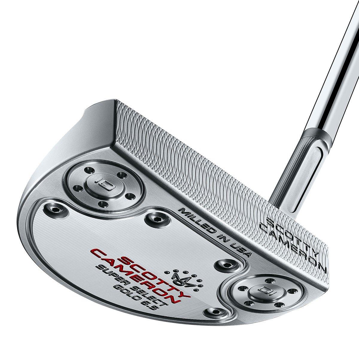 Titleist Scotty Cameron Super Select GOLO 6.5 Golf Putter Features : DUAL-MILLED FACE TECHNOLOGYMULTI-MATERIAL CONSTRUCTIONREFINED I-BEAM JET NECK / PERFORMANCE WEIGHTING1-Year Guarantee / Stainless Steel Putter Shaft / Textured Pistolini Plus GripTitleist's Scotty Cameron's GOLO 6.5 putter returns with its familiar rounded compact mallet shape and name in a brand-new size. The GOLO 6.5 has the same head shape as the GOLO 6 but was designed with a small I-beam jet neck for players who favour a putting stroke with the more arcing toe flow properties of a blade putter.Code : 417416DUAL-MILLED FACE TECHNOLOGYCombining the legendary softness of deep-milled putters with the feedback and roll of mid-milled offerings, Scotty’s new dual-milled face technology brings a tour-inspired feel to a new level.REFINED I-BEAM JET NECKThe Super Select GOLO 6.5 features a redesigned I-beam jet neck that lays back slightly and employs a seamless shaft-over-spud design for an uninterrupted view of the ball from address in a toe flow-promoting configuration with nearly one full shaft of offset.PERFORMANCE WEIGHTINGThe Super Select putter range incorporates performance weighting technology. Customisable sole weights precision milled in the United States from 303 stainless steel. Scotty’s performance weighting concept allows for optimal weight distribution and higher MOI so each putter can achieve ideal balance and proper performance at every length. Complete with a new textured Pistolini Plus grip and a new UV-resistant headcover designed to protect the putter during normal use.