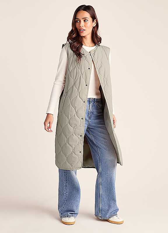 TOG24 Jena Women's Long Padded Gilet - Beige - Size 8