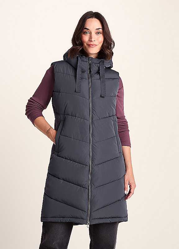 When it's cold and windy, but you need your arms free for a full range of movement, our ranskill extra long padded gilet is just the job. Ranskill is quilted in a chunky, but flattering, chevron design and thickly padded with a warm, insulated eco filling. The soft and cosy fixed hood can be adjusted with dyed to match chunky drawcords for a custom fit.Designed by our team in west Yorkshire to be robust enough to stand up to everyday wear, ranskill has a full length two-way zip secured with press studs, making it easy to slip on and off, and two cosy lower zip up pockets with chunky pullers that can double up as hand warmers if you forget your gloves. Ranskill comes in colours inspired by the natural beauty of Yorkshire and the finishing touch is our signature TOG24 embroidered logo on the pocket.Machine washable at 30°CUpper: 100% PolyamideLining: 100% PolyesterFill: 100% Recycled Polyester