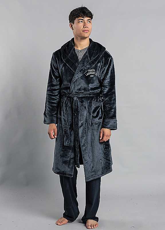 This plush dressing gown from Tokyo Laundry is a great addition to your night-time essentials. Features contrast trims, hood, two front pockets, belted tie fastening, and Tokyo Laundry logo on the chest.Machine washableFollow care label100% PolyesterKeep away from fire.