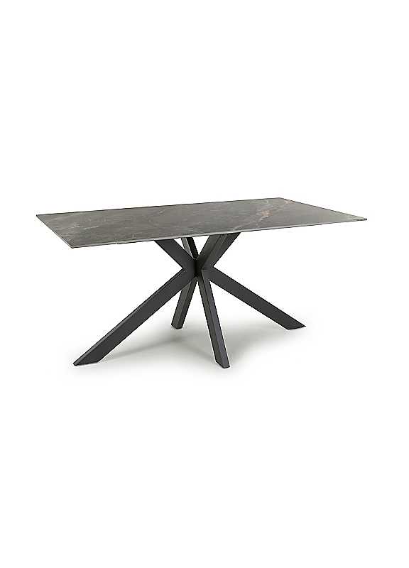 This practical rectangular dining table comes in a stunning glossy marble finish and would complement a variety colour schemes. The 1.6m ceramic top is supported by a signature X shaped frame rendered in fashionable black metal. Comfortably seats 4 people. Enhance your dining space with this stylish and functional table which combine aesthetics with practicality.Overall Assembled Dimensions: H76 x W160 x D90cm Weight of Product: 49kgSpecifications Material: Ceramic, MetalSuggested Number of People for Assembly: 1/2Tool Kit Included: Yes Self-AssemblyManufacturer's 1 year guaranteeProduct Care: Wipe clean only, avoid household cleaners/abrasivesPlease remember to measure your available space before ordering. If using on an un-carpeted floor we recommend rubber or felt protection pads be used under the legs to avoid damage to your floors.