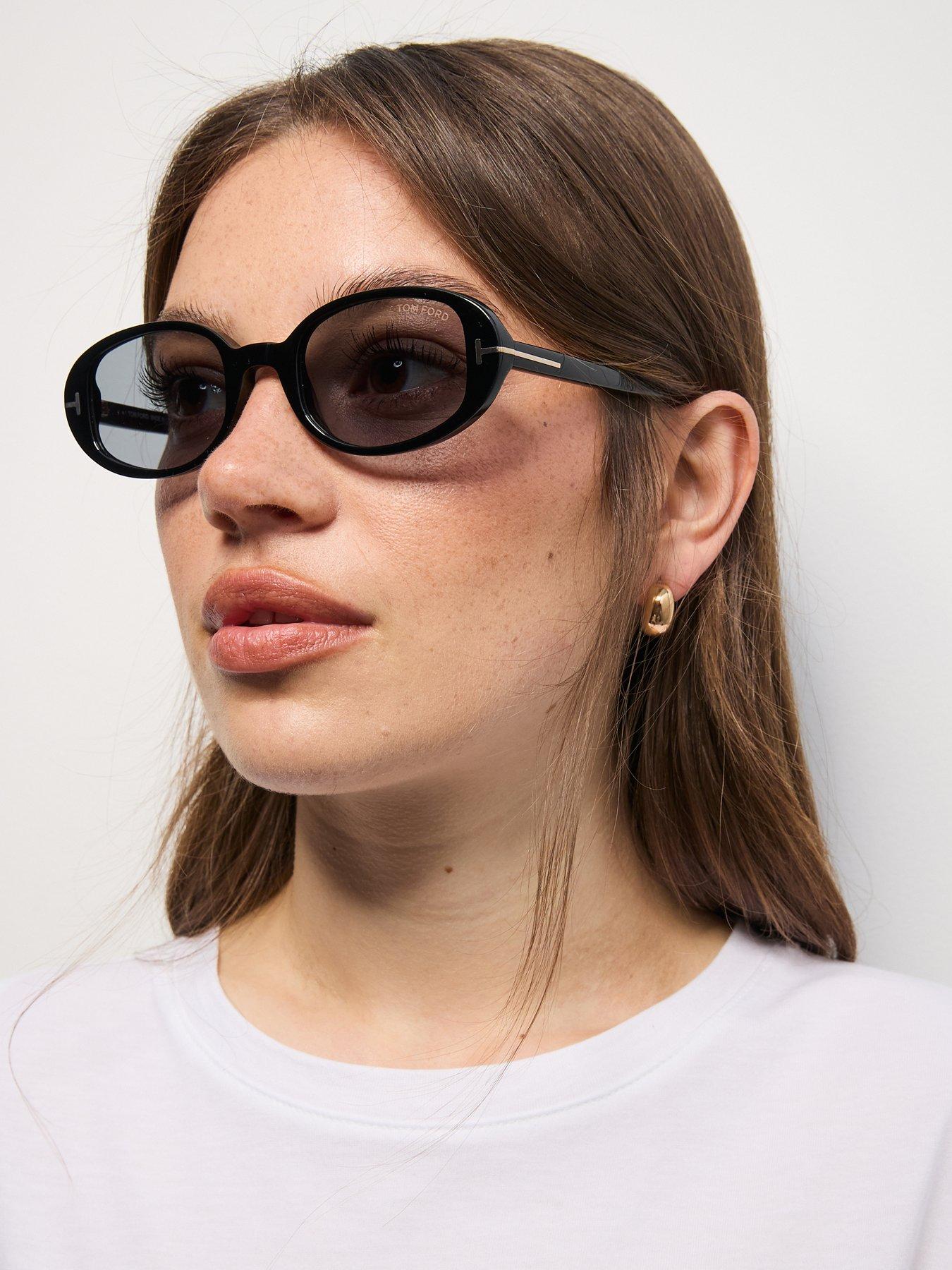 Tom Ford Iggy Oval Sunglasses - Shiny Size & Fit One Size Details Iggy Oval Sunglasses - Shiny by Tom Ford Black Oval frame Coloured lens Standard arm detail Single bridge with moulded nose pads Material & Care Material Content: ACETATE SUNGLASSES Washing Instructions: Wipe Clean