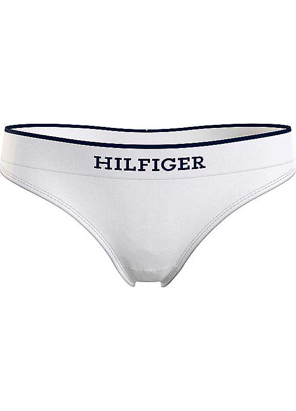 Tommy Hilfiger Logo Print Thong - White - Size XS