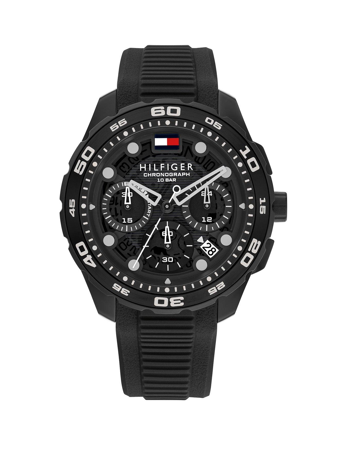 Tommy Hilfiger Men'S Black Silicone Watch Tommy Hilfiger Is One Of The World'S Leading Designer Lifestyle Brands And Is Internationally Recognized For Celebrating The Essence Of Classic American Cool Style With A Preppy Twist. Bold Sport, Dive Inspired And Iconic. - Black Aluminuim Rotating Spor 24Hr Display: N Case Diameter (In Cm): 4.2 Case Height (In Cm): 1.2 Case Length (In Cm): 4.2 Case Shape: Round Case Width (In Cm): 4.2 Fastening Type: Strap Buckle Glass: Mineral Movement: Japanese Quartz (Battery) Strap Material: Silicone Water Resistant: Y