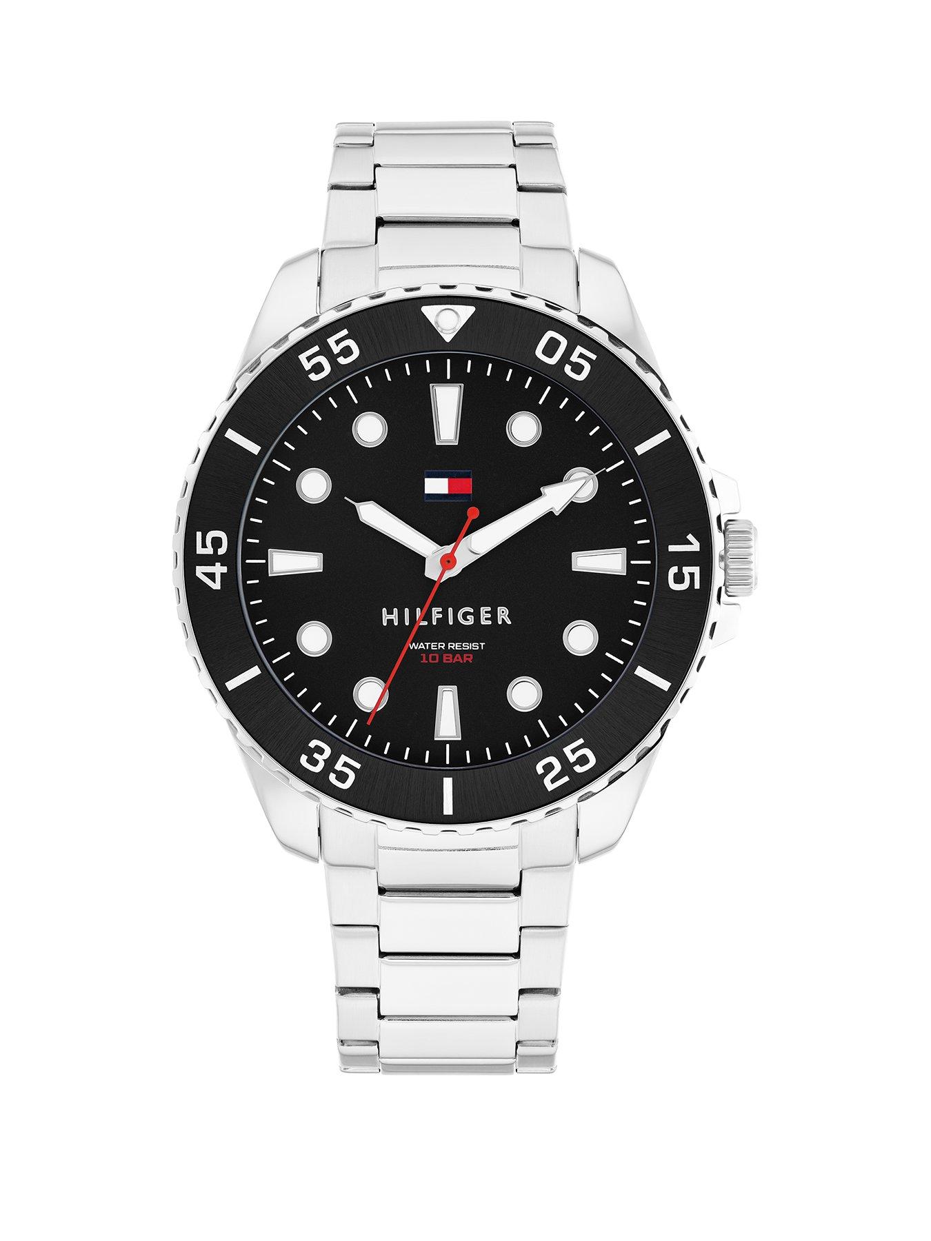 Tommy Hilfiger Oceanic Men's Watch Black Tommy Hilfiger is one of the world's leading designer lifestyle brands and is internationally recognized for celebrating the essence of classic American cool style with a preppy twist. Bold, Sporty and Dive Inspired. - 42mm - 9.3mm stainless steel case th 24Hr Display: N Case Diameter (in cm): 4.2 Case Length (in cm): 4.2 Case Shape: Round Case Width (in cm): 4.2 Glass: Mineral Movement: JapaneseQuartz(battery) Strap Material: Stainless Steel Water Resistant: Y