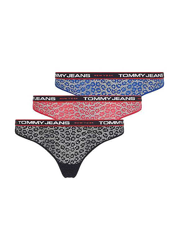 Tommy Hilfiger Pack of 3 Lace Patterned Thongs - Multi - Size S