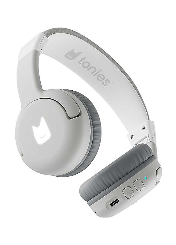 These Moon Grey Bluetooth® Headphones pair with Toniebox 2 for safe, comfy listening. With fun LED lights and up to 40 hours of play, it's Toniebox listening, with room to roam. Go wireless with these Moon Grey Bluetooth® Headphones, the perfect match for Toniebox 2. With easy NFC pairing, little listeners can enjoy up to 40 hours of wireless playtime. Designed with growing kids in mind, they feature a comfy adjustable fit, playful LED lights, and a safe volume limit of 85dB.Age suitability: 3+