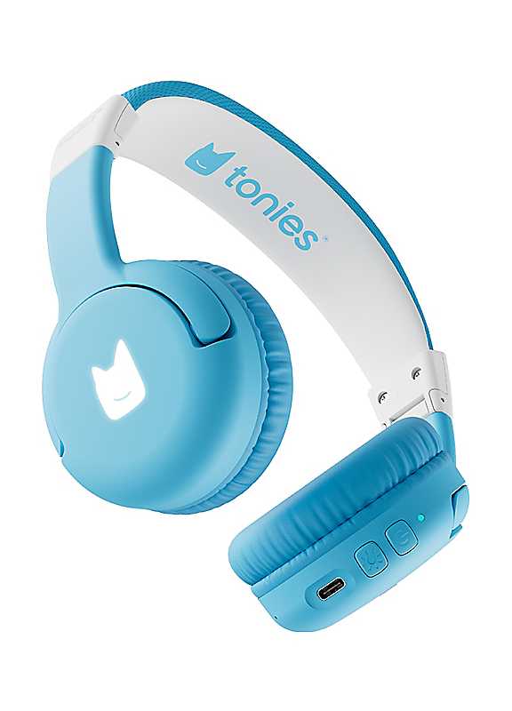 These Sky Blue Bluetooth® Headphones pair with Toniebox 2 for safe, comfy listening. With fun LED lights and up to 40 hours of play, it's Toniebox listening, with room to roam. Go wireless with these Sky Blue Bluetooth® Headphones, the perfect match for Toniebox 2. With easy NFC pairing, little listeners can enjoy up to 40 hours of wireless playtime. Designed with growing kids in mind, they feature a comfy adjustable fit, playful LED lights, and a safe volume limit of 85dB.Age suitability: 3+