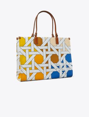 Bold contrasts of primary colors. Basketweave, exaggerated and abstracted. Our Ella tote is a versatile essential. It is super functional — sturdy and light, spacious and streamlined, with an oversized logo graphic.
