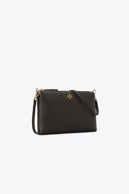 Tory Burch Women's Mercer Pebbled Zip Crossbody in Black, One Size