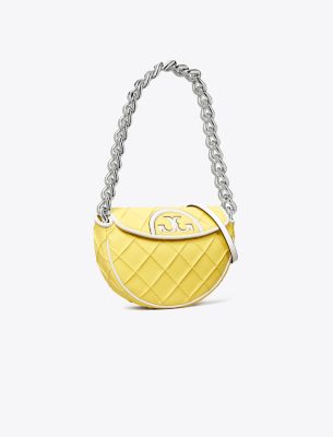 Tory Burch Women's Mini Fleming Soft Patent Border Crescent Bag in Yellow/White, One Size
