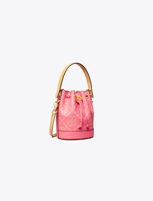 Tory Burch Women's Mini T Monogram Contrast Embossed Bucket Bag in Pink, One Size