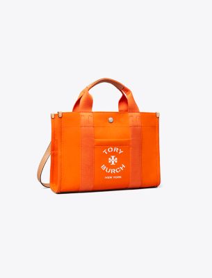 One of our favorite silhouettes. The Small Tory Tote is made of durable cotton canvas with webbing straps. It has a secure zip closure and pockets for organization inside and out.