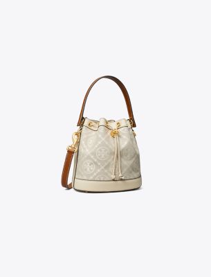 Tory Burch Women's T Monogram Bucket Bag in White, One Size