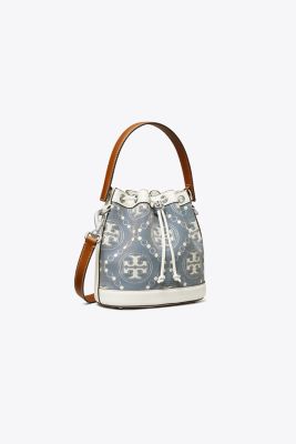 Tory Burch Women's T Monogram Denim Bucket Bag in Blue, One Size