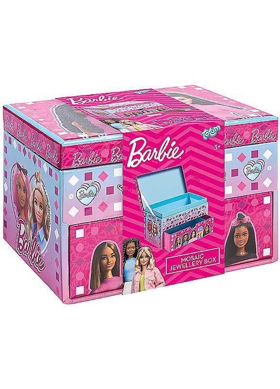 Create a dazzling place to store treasures with the Totum Barbie Mosaic Jewellery Box Craft Kit! This engaging kit provides everything needed for young Barbie fans aged three and up to decorate their very own jewellery box. Using the included colourful, self-adhesive mosaic stickers (gems or foam squares), children can follow the guides or create their own patterns to personalise the sturdy cardboard box, which features vibrant Barbie graphics, a main compartment, and handy drawers.Barbie licensedDIY craft kit to decorate a Barbie-themed jewellery boxSturdy cardboard jewellery box with compartment & drawersSelf-adhesive mosaic stickers (gems/foam squares)Age suitability: 3+ yearsWarning: Small parts - chocking hazard, children must be supervised by an adult at all times. Not suitable for children under 3 years of age