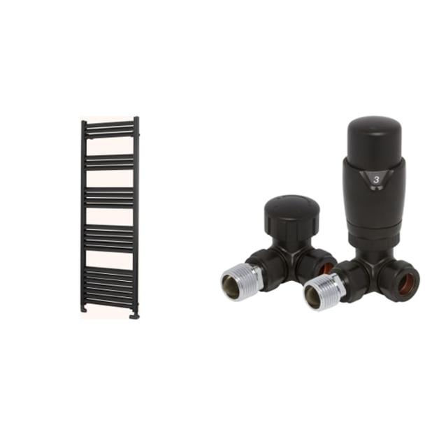 Towelrads Eton Anthracite Radiator 1600 x 300mm + Towelrads 105mm x 65mm Round Corner Thermostatic Radiator Valve Lockshield Valves Black
