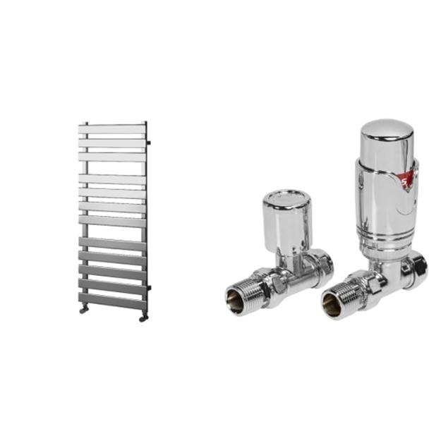 Towelrads Haven Flat Panel Designer Chrome Towel Radiator 800 x 500mm + Towelrads Thermostatic Radiator Valve Chrome