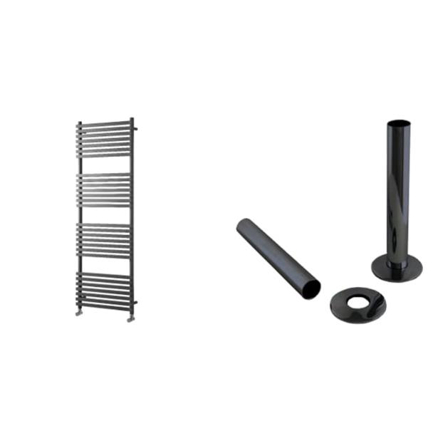 Towelrads Invent Square Anthracite Heated Towel Rail Radiator 1186 x 500mm + Towelrads Anthracite Pipe Sleeves 130mm